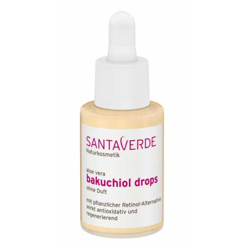Das Serum mit dem Power Wirkstoff Bakuchiol wirkt intensiv regenerierend, versorgt die Haut mit Antioxidantien und verbessert das Hautbild. Reiner Aloe Vera Saft hat eine feuchtigkeitsspendende Wirkung. Bakuchiol, die pflanzliche und milde Retinol Alternative, wirkt Sonnenschäden entgegen, aktiviert die Zellerneuerung und hat antioxidative, festigende und antientzündliche Effekte. Das Antioxidans Lycopin aus Tomaten wirkt effektiv gegen freie Radikale. Nährendes Pflaumenkernöl schützt die Haut vor Feuchtigkeitsverlust. Verleiht ein geglättetes, verfeinertes und ebenmäßiges Hautbild. Besonders geeignet für sensible, irritierte und anspruchsvolle Haut.