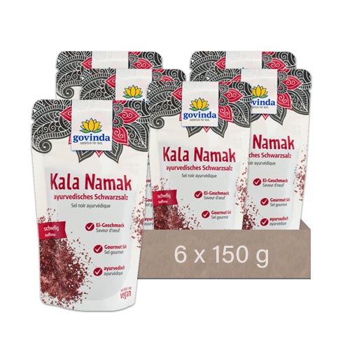 Kala Namak ist ein echtes Gourmetsalz! Es wird aufgrund seiner dunklen Farbe auch Schwarzsalz oder Black Salt genannt. Der besondere Herstellungsprozess bewirkt die außergewöhnliche schwarz-rosa Farbe und den schwefligen, leicht rauchigen Geschmack. Das natürliche Steinsalz wird dazu mit Salsola Stocksii bei 900-1000 °C gekocht und danach wieder abgekühlt und zerkleinert. Darum wird es gern in der veganen Küche verwendet, da es Speisen ein feines Aroma nach Ei verleiht. Wegen des starken Eigengeschmacks wird eine sparsame Verwendung empfohlen.