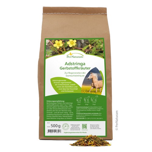 Füttern Sie für ein 600 kg schweres Pferd 50 bis 70 g Adstringa Gerbstoffkräuter über 5 bis 7 Tage.