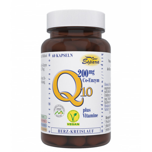 Co-Enzym Q10 (55,33%), Hydroxypropylmethylcellulose*,Füllstoff Erbsenfasern,Thiaminmononitrat(0,38%), Folsäure (0,028%).