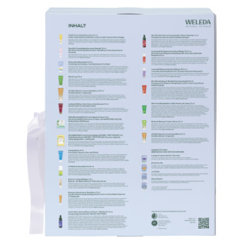 Der Premium Adventskalender, kunstvoll illustriert von der Künstlerin Kera Till, verbindet ästhetisches Design mit kostbaren Schätzen aus der Natur. Hinter 24 detailreich gestalteten Türchen verbergen sich 11 Originalprodukte sowie 9 Miniaturen – feinste Naturkosmetik, Tag für Tag ein Verwöhnmoment. 4 Samentütchen in demeter Qualität sorgen für mehr Biodiversität und bringen die Weleda Pflanzen nach Hause.